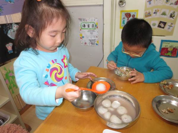“十五的月亮圆又圆,十五的元宵甜又甜”,2013年2月22日,望京分园的小朋友们欢欢喜喜包元宵。“揉一揉、压一压,放上馅儿,团一团”,吃着自己包出来的小元宵,味道格外香!