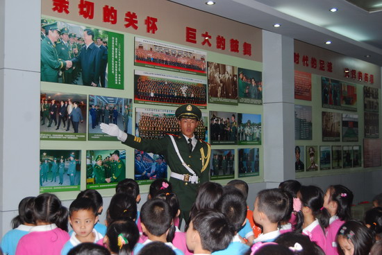 擎旗手叔叔讲解天安门国旗护卫队的光荣历史