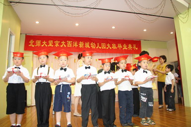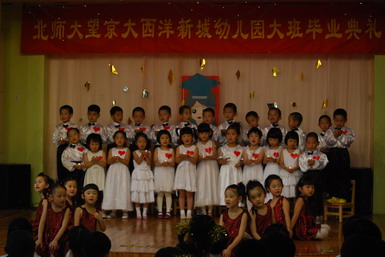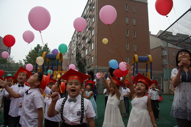 2008年6月27日,九游体育望京大西洋新城幼儿园举行了08届大班毕业典礼。孩子们身着节日的盛装、站着整齐的队列,共同演唱起《老师,再见了》和《爱的真谛》,伴随着大班小朋友悠扬动听的毕业之歌,大班毕业典礼拉开了序幕。在毕业典礼上,孩子们不仅用歌声表达了对幼儿园、老师、弟弟妹妹的惜别之情,还用真挚的感情朗诵了毕业献辞、为幼儿园献上了一份精心的毕业礼物。当史园长为小朋友戴上毕业帽、颁发毕业纪念册时,全场响起了热烈的掌声,大家共同为每一名大班小朋友喝彩!最后满载着幼儿心愿、老师期望的心愿气球徐徐升上天空,孩子们跳起了优美的集体舞,共同感受着在幼儿园里这最后的美妙时刻,庆祝自己的成长!