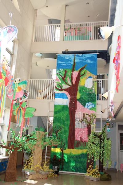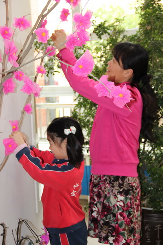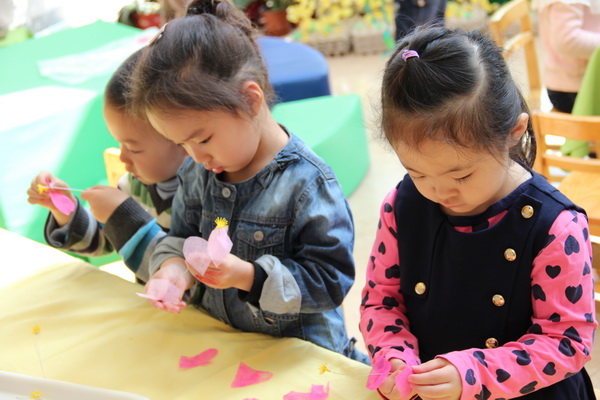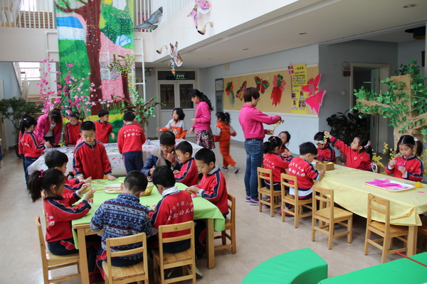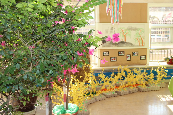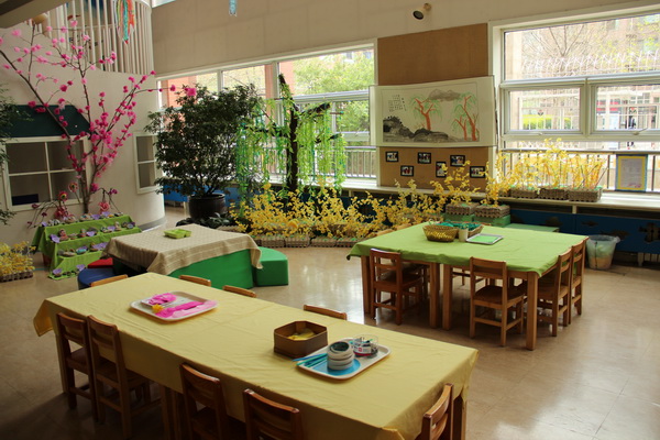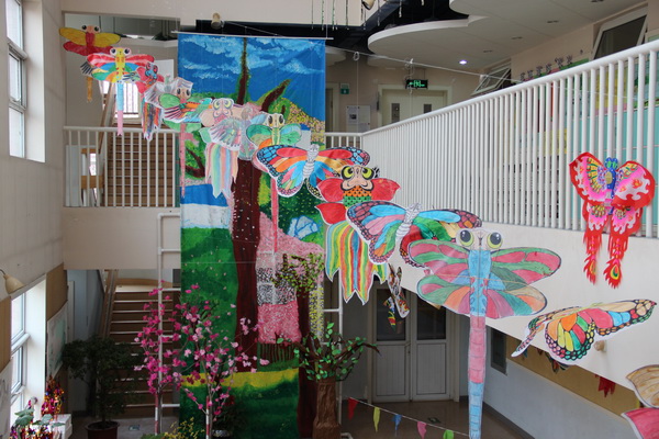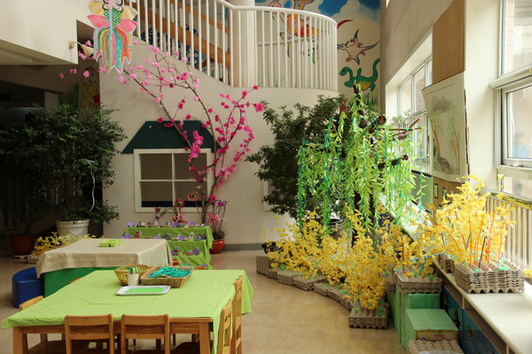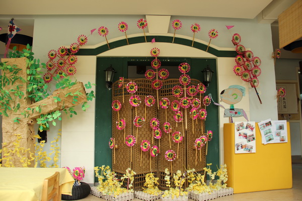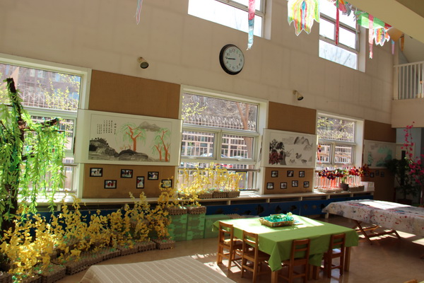 “春色·春趣”主题大厅,是孩子和老师们的共同创作,儿童活动区设有剪柳枝、做风车、画风筝等项目,在为其两周的时间里,各班教师轮流带领孩子们用小手装扮春天,用心拥抱春天!