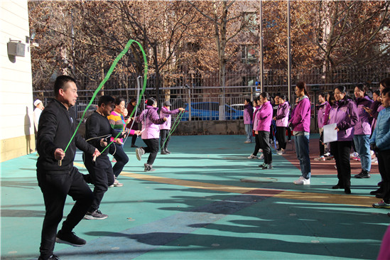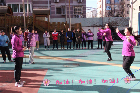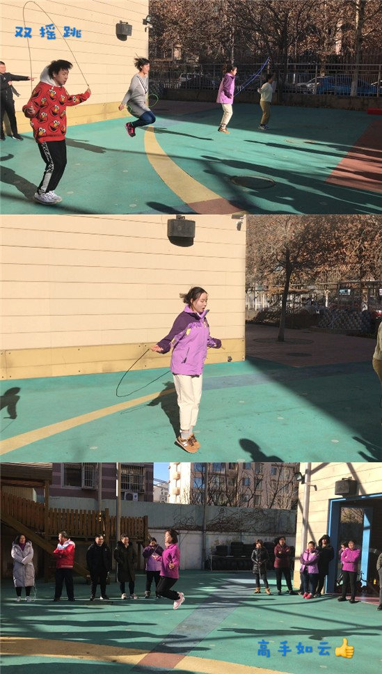 2018年12月13日、 14日中午望京分园开展了首届教职工跳绳大赛。经过前期工会小组和多个部门的统筹规划,本次教职工跳绳大赛以个人赛和团体赛的形式共角逐出5项冠亚季军。虽然已是寒冬时分,但老师们运动的热情却丝毫不减,赛场上大家争分夺秒、坚持不懈,以优异的成绩突破了自我。单人单摇2分钟300个,双人单摇跳2分钟223个,编花跳2分钟272个、双摇跳1分钟60个、团体跳大绳3分钟200个……这些惊人的成绩让九游看到望京分园教职工在跳绳项目上的实力,可谓是卧虎藏龙!