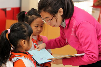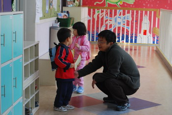 蹲下来和孩子说话