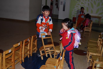 “等一下,我先帮你挪开椅子,你再过来。”