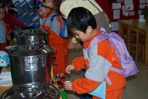 吃完推椅子,收拾果皮,送回餐盘