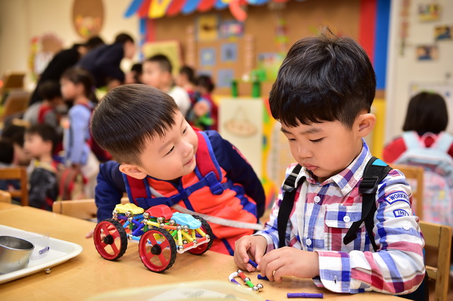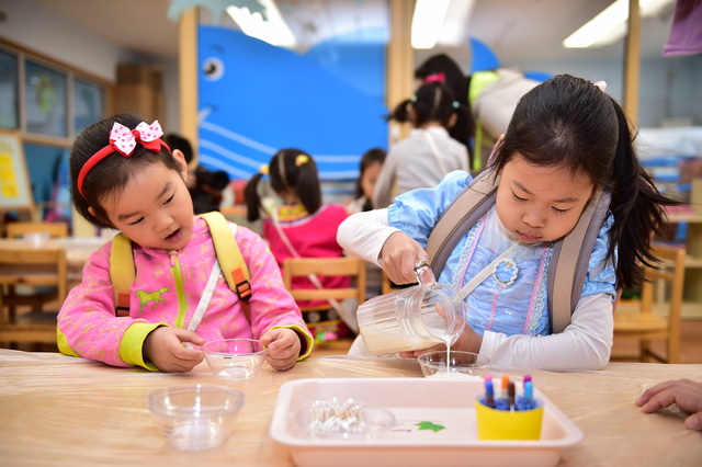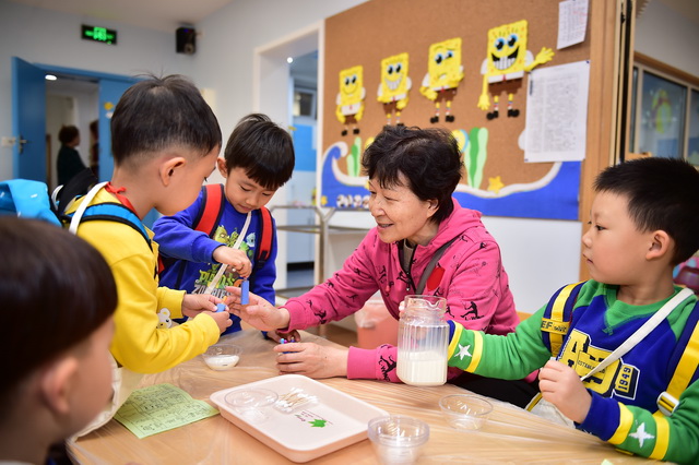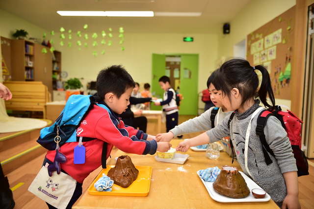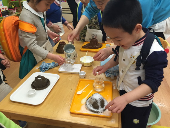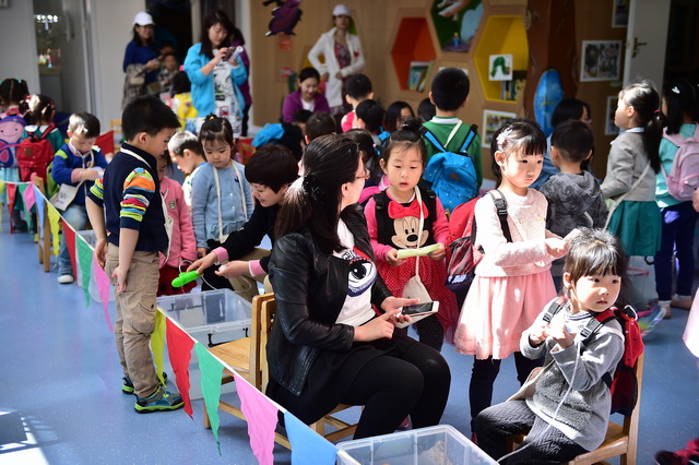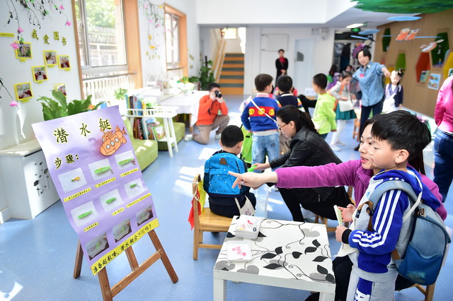 2017年4月12日,望京分园开展了以“科学探索”为主题的小鬼当家活动。在学前领域九游常把孩子比作天生的科学家,不是因为他们有多少渊博的科学知识,而是他们对事物与生俱来的好奇心、探究欲可以和专业的科学家媲美。一个小风车、一个不倒翁、一只万花筒、一架纸电话……这些常见的童年小玩具能让孩子们乐此不疲地吹啊吹、按啊按、看啊看、听啊听,摆弄一上午。更何况还是自己亲手制作的!还有牛奶、小苏打、白醋……这些生活中常见的材料,放在一起竟会发生神奇的变化!