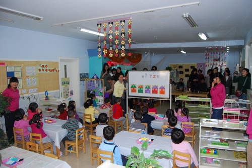 中大、混龄班幼儿家长来园观摩了幼儿的半日活动,看到孩子们活动的井然有序,也情不自禁的参与到孩子们的学习中来。半日观摩后,及时地与教师进行了反馈,融洽了家园共育的理念。