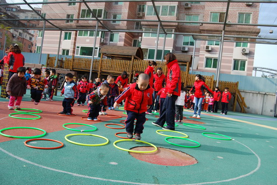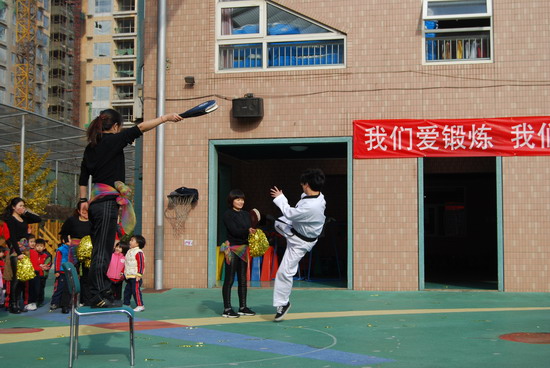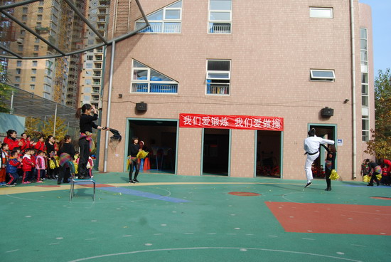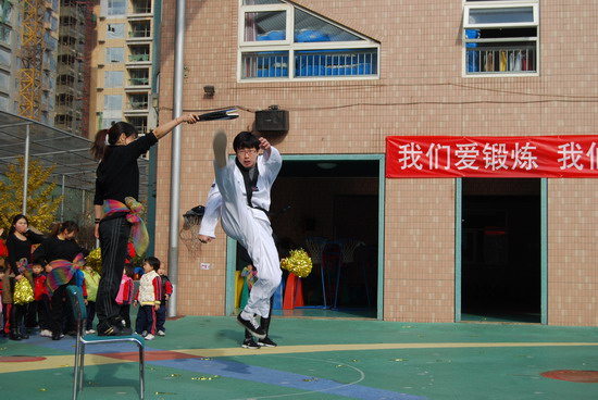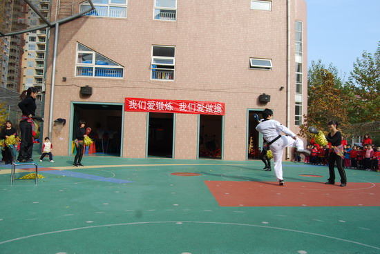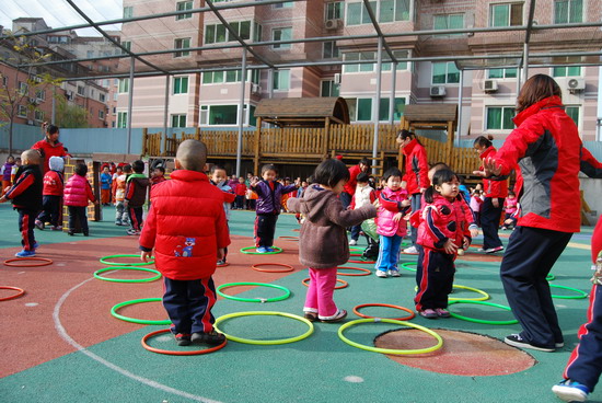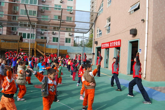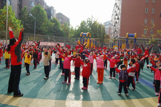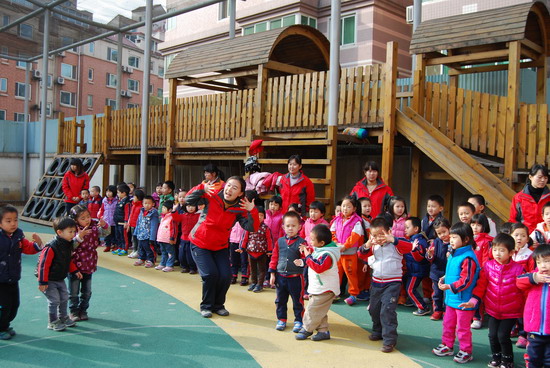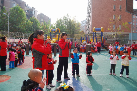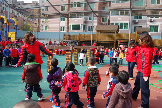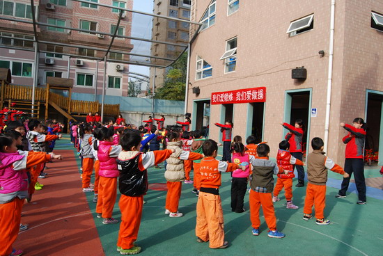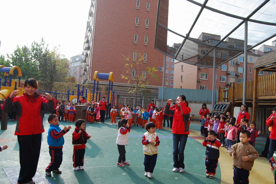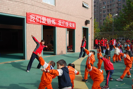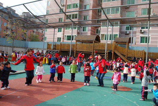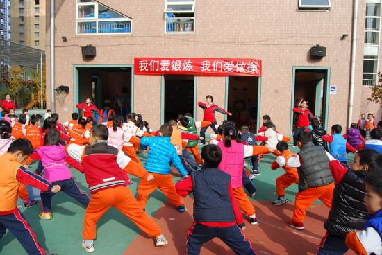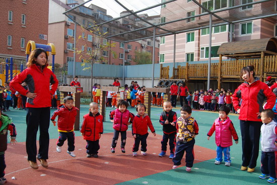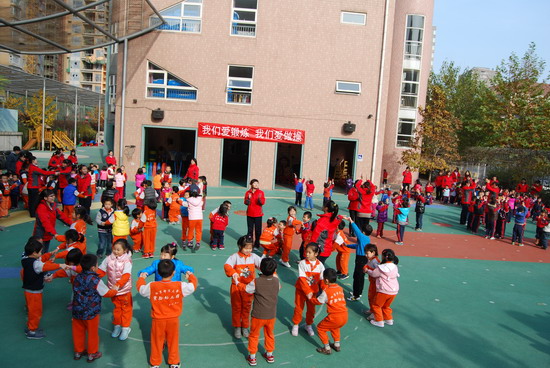 在优美的音乐下老师和幼儿分别进行了操表演, 开幕式在教师与幼儿的互动游戏中结束。这仅仅是今年冬季锻炼活动的序曲,幼儿园会组织幼儿们在这个冬天积极锻炼身体,做健康宝贝,享快乐童年!