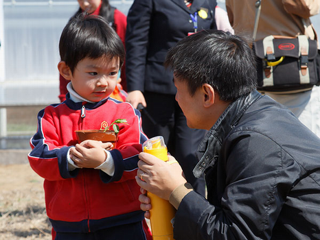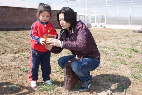“小苗儿,你一定要好好长大哦!”(亲子种植)