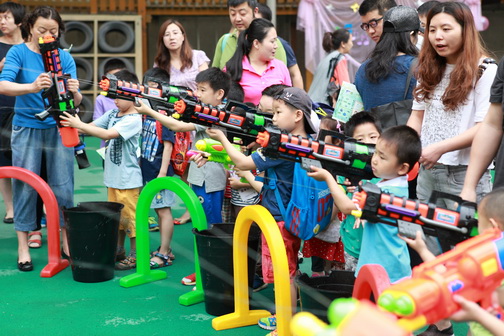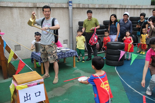 2015年5月29日,作为百年园庆的延续性活动,也为了与孩子们一起庆祝自己的节日,望京分园开展了一次别开生面的大型亲子嘉年华活动。本次活动九游共创设了26项游艺项目,不仅在空间上由室内扩展到了室外的各个角落,更在项目上有众多新的尝试,如户外的亲子大碗茶,不仅让孩子和家长们在游戏中体验了老北京传统文化,更能在品味大碗茶的过程中感受到浓浓的亲情、风雨操场的捏面人和吹糖人活动,让孩子们在亲身“吹”过程中感受了传统民间艺术、会议室设置的小小飞行员体验馆,更是让孩子们在3D全景的真实场景中过了一把开飞机的瘾、紫藤架下热闹的跳蚤市场,让孩子们在快乐的交易中收获了人生的第一桶金、如彩虹一样朵朵绽开的手绘伞,在微风中迎风飘动的扎染T恤,让孩子们在绚丽的色彩中做了一回生活的艺术家……