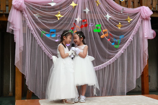 黄珊总园长和徐翠凤园长与孩子们亲切合影