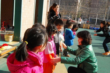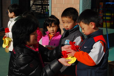 徐主任给幼儿颁发奖牌