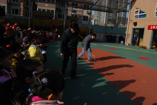 后勤老师展示抖空竹 我也来试一试