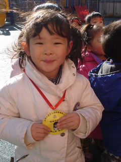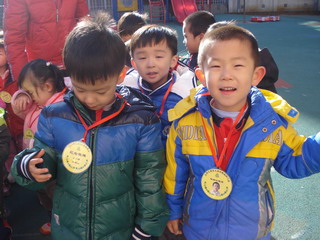 戴上奖牌真高兴!
