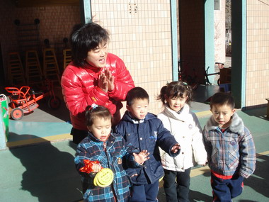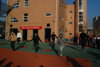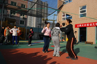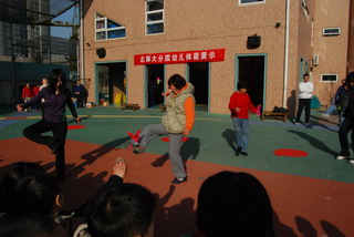 翟老师带领小朋友热身