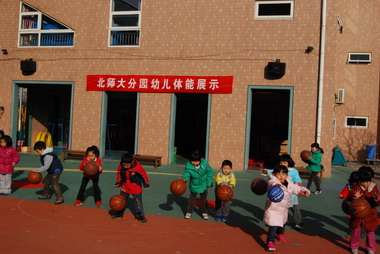 中班幼儿展示拍球
