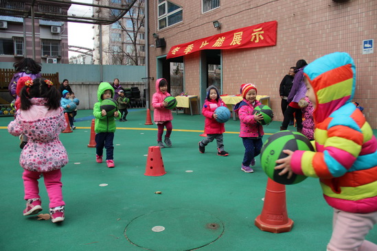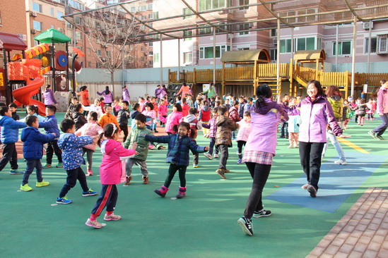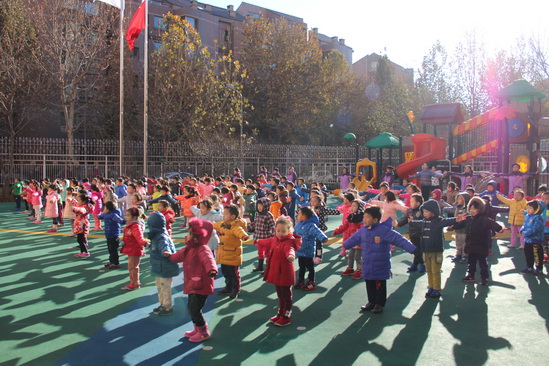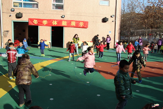 凛冽的寒风吹散了雾霾,温暖的阳光亲吻着大地。2015年12月2日-3日,望京分园的小朋友和老师终于迎来了期盼已久的蓝天下的冬季体能展示活动。虽然入冬以来孩子们户外活动受到了一定影响,但这丝毫影响不了大家运动的热情和质量,丰富多彩的室内体育活动让孩子们的体能得到了很好的锻炼。趁着好天气,大家舒展筋骨,把这一个学期做操、拍球、跳绳的本领互相展示,激发不怕严寒、热爱运动的精神!