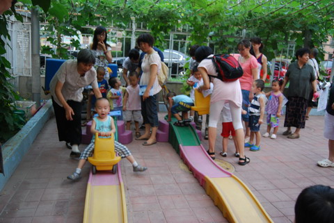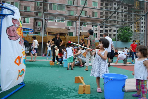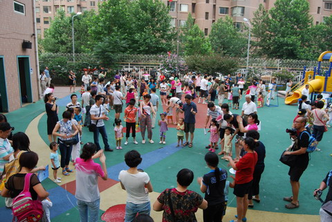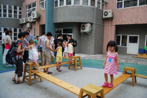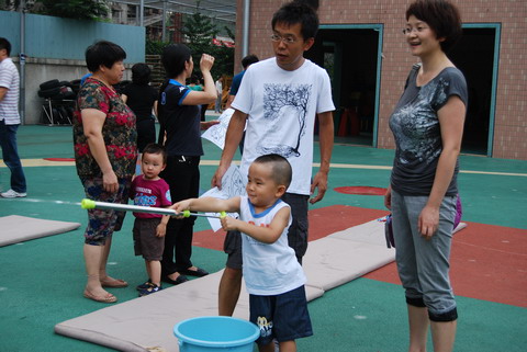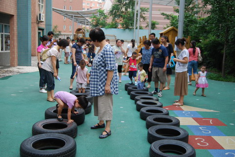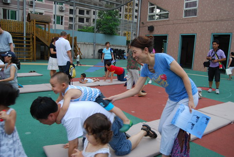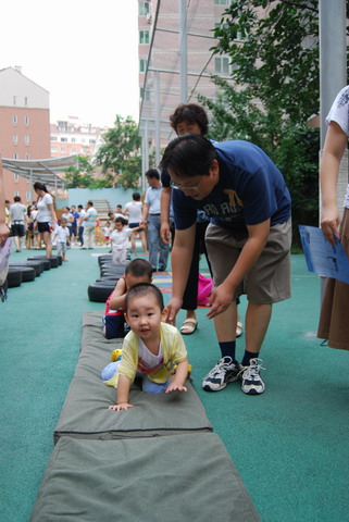 2011年7月13日晚,望京分园举行了亲子园消夏晚会,根据幼儿的年龄特征,游戏设为:平衡木、沙中寻宝、疯狂赛车、桌上保龄球等趣味十足的亲子游戏,达到了亲子同乐的效果,加强了家园之间的相互沟通,增进了家长和孩子的情感交流。