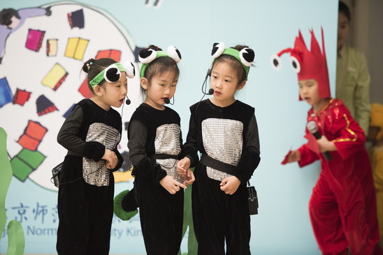 孩子们表演自己的绘本故事《新编小蝌蚪找妈妈》