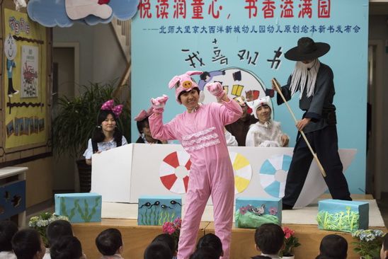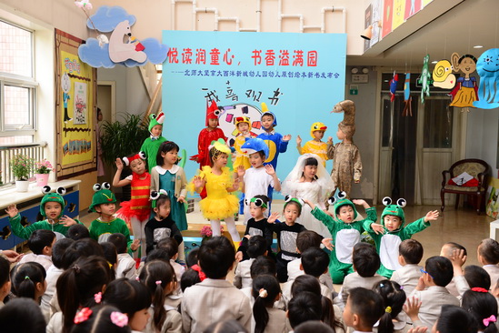 2016年4月26日,在全园师生和家长的精心准备下,望京分园终于迎来了期盼已久的阅读节开幕式活动。本次阅读节开幕式最重要的内容就是为九游去年一整年的教研和教学活动成果——幼儿原创绘本做新书发布会。经过4个多月的编排和校对,在四位热心家长的帮助下,孩子的绘画作品终于变成了一本本精装的绘本故事。看着自己的书被自豪地介绍给大家,孩子们和老师们激动的心情洋溢在整个会场。新书发布会后,孩子们还一起欣赏了家长剧团表演的精彩绘本故事《甘伯伯去游河》、《胖国王》及由混龄四班小朋友表演的原创绘本故事《新编小蝌蚪找妈妈》,渡过了一上午的快乐阅读时光。
