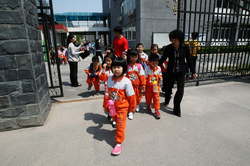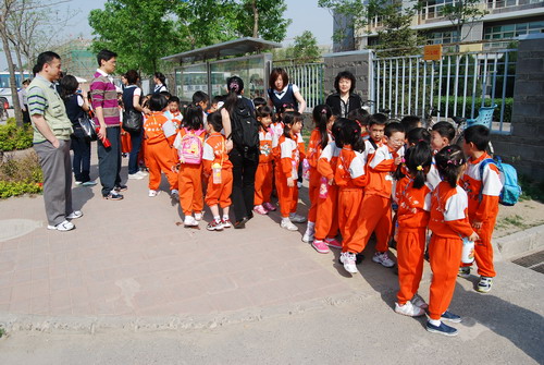 活动前,为了保障幼儿的出行安全,徐园长多次就安全事宜讨论,最后决定组成临时安全护卫队,由我园男教师、保安以及四名“爸爸”担任安全护卫队成员,在徐园长的带领下,全程参加活动。