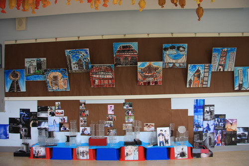 (上边:孩子作品;下边:孩子与家长去过的相应城市的照片)