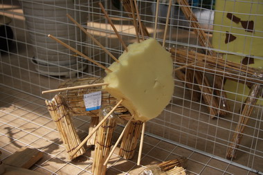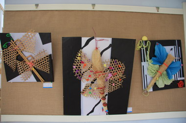 运用扣子、毛根、草席以及丝瓜瓤等制作蝴蝶