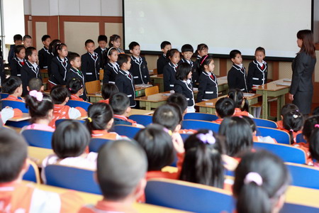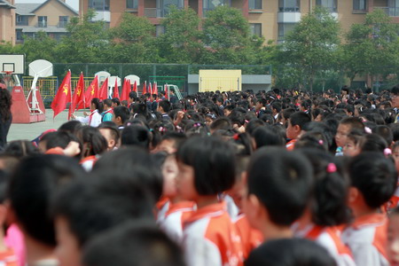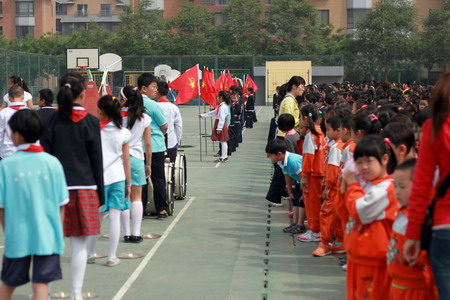 观看升旗仪式,鲜艳的红领巾在召唤