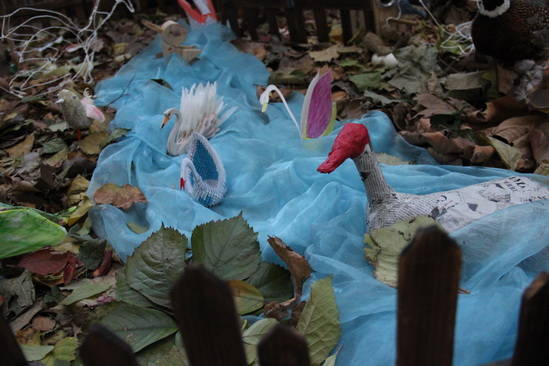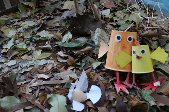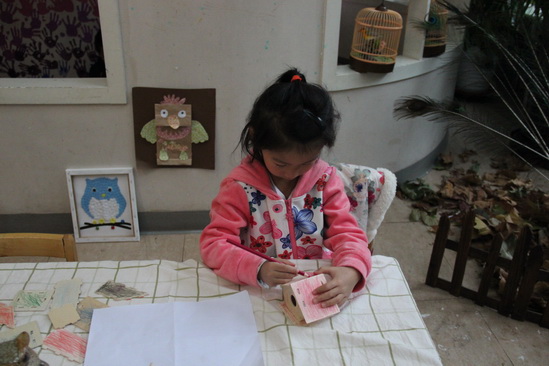 用五彩羽毛、泥巴、落叶、报纸、木片来做一个鸟窝……