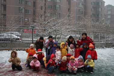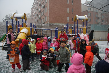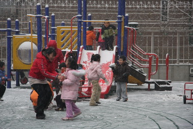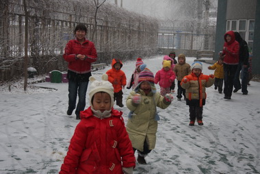2007年的第一场雪,雪花骤然满天飘洒,飘落的雪花漫无边际的迎风摇曳,纷纷扬扬满目银装素裹,温暖的期待飘逝在瞬间。回眸,看到了孩子和老师,听见笑声伴随着雪花回荡在茫茫的雪海里。