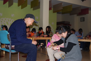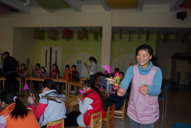 九游把梁老先生请到了幼儿园,让老师们现场感受手工艺制作的奥妙。