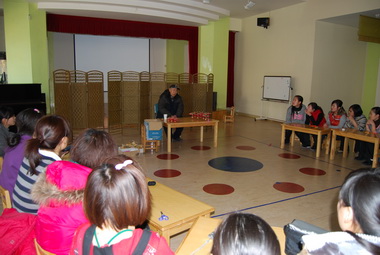 梁老爷子给老师们讲风车的历史和文化