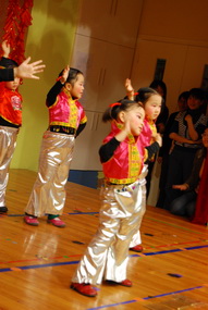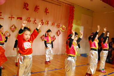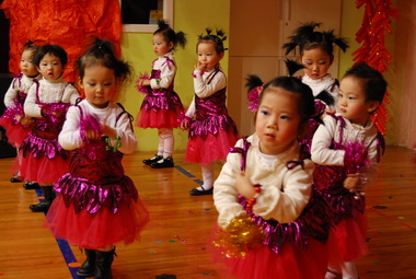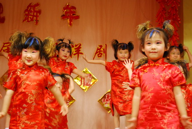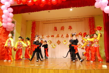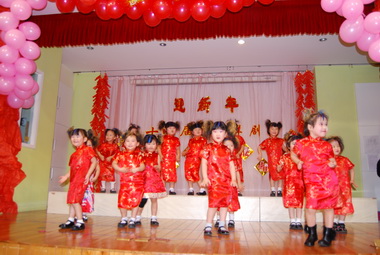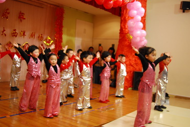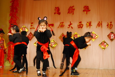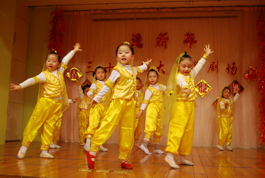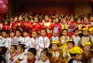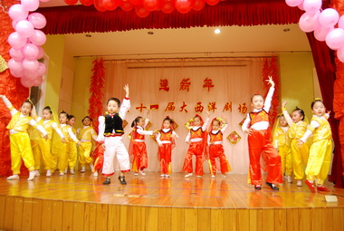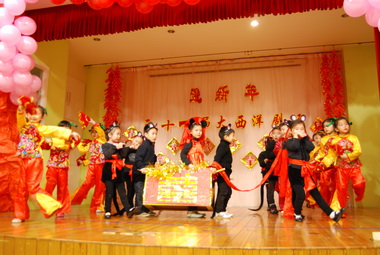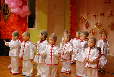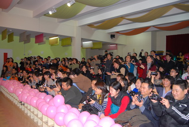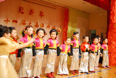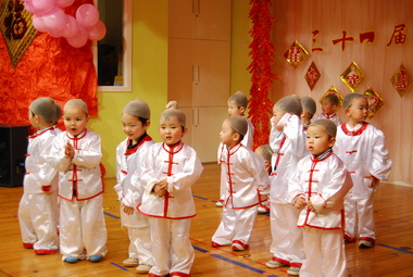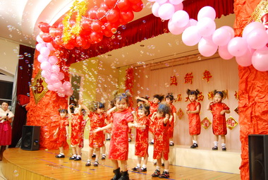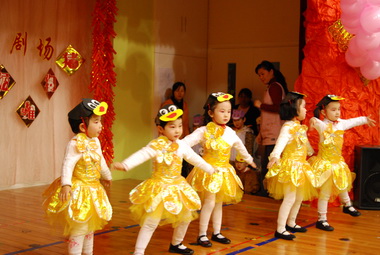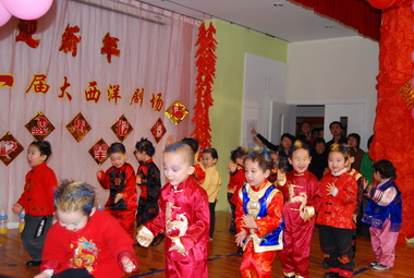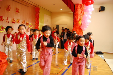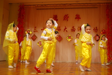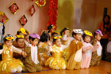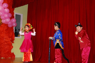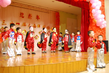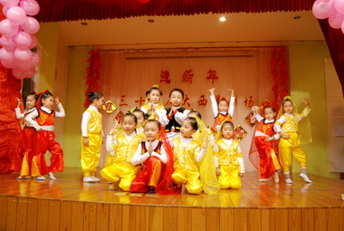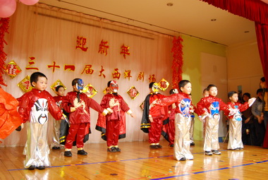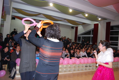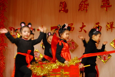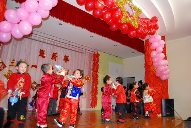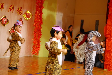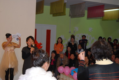 家长参与“你来比划我来猜”的游戏,并互赠礼物。