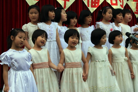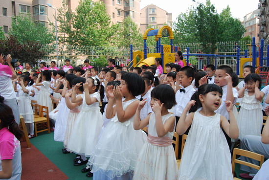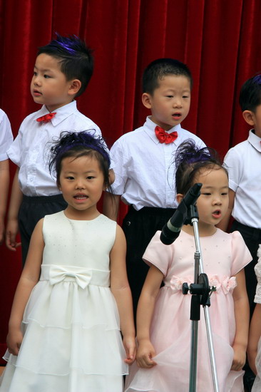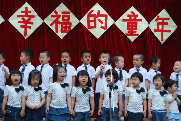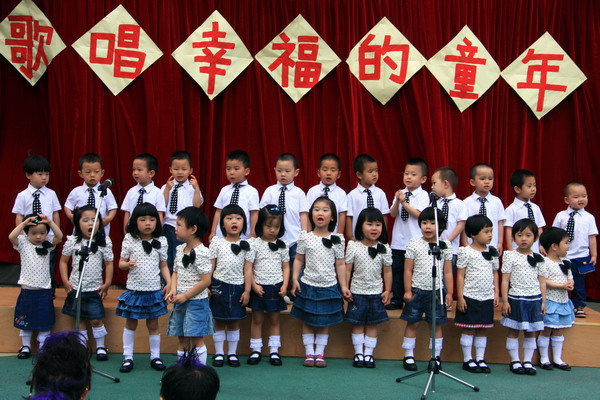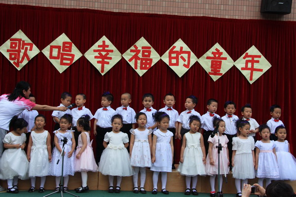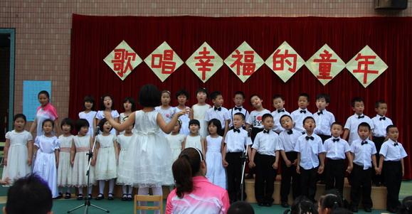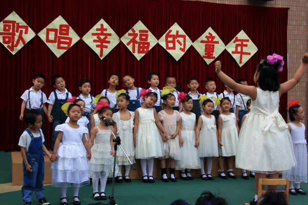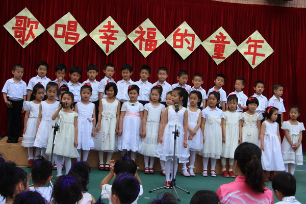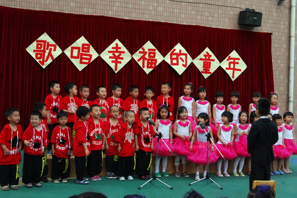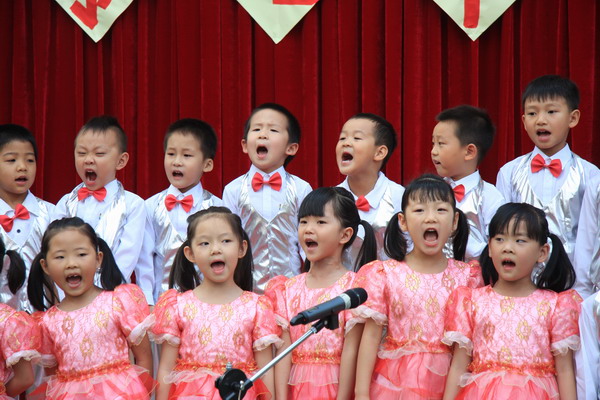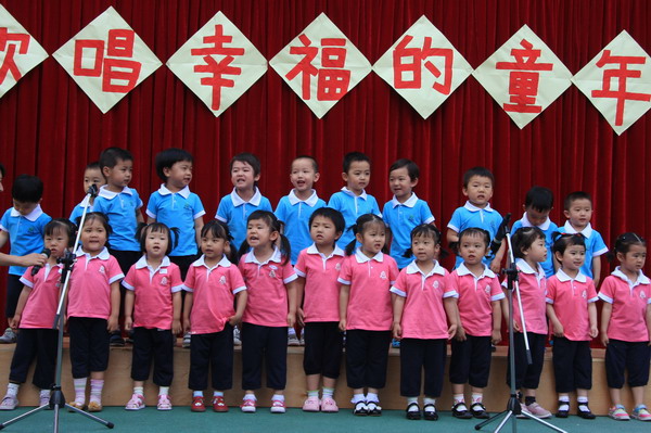 “六一,六一,大地穿上花衣,小朋友们手拉手,庆祝自己的节日;阳光多灿烂,花儿多美丽,九游唱歌跳舞,庆祝六一……”5月27日,随着欢快的音乐响起,望京分园“歌唱幸福的童年”庆六一歌咏会正式拉开帷幕。每个班级演唱了两首自选的儿歌,有表演唱,有齐唱,有领唱;有报幕,还有小指挥……孩子们稚嫩清亮的歌声,开心可爱的笑脸,小指挥们投入专注的指挥,妈妈合唱团、教师合唱团的精彩献唱,以及英语教师的助兴,让这一欢聚时刻别具一番风情,幼儿园的每一角落都跳动着快乐的音符。 九游快乐,九游歌唱幸福的童年!