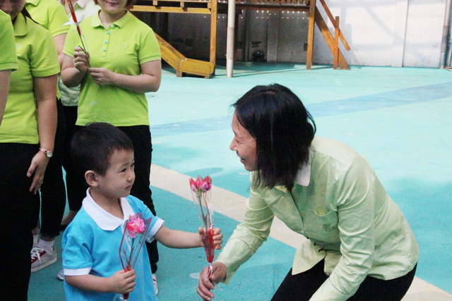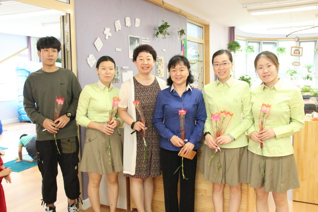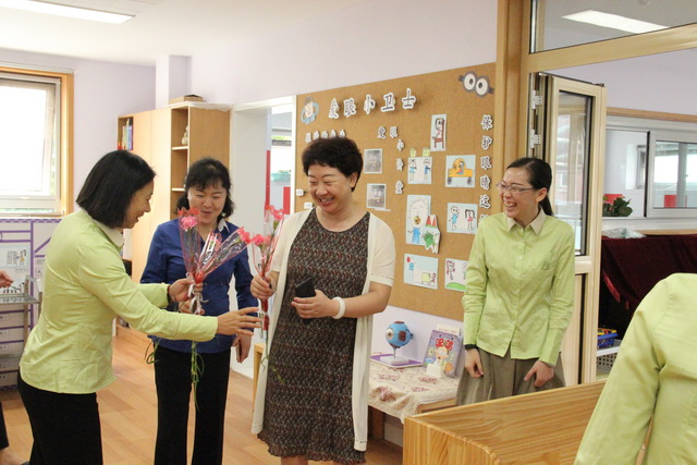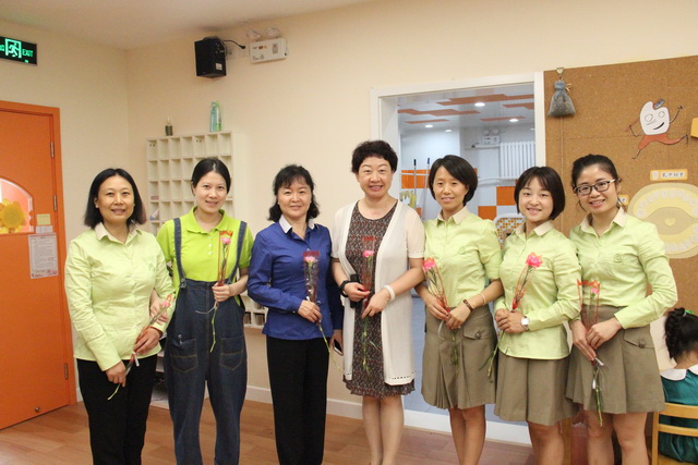 黄珊总园长为教学班及后勤各岗教师送上节日祝福与鲜花