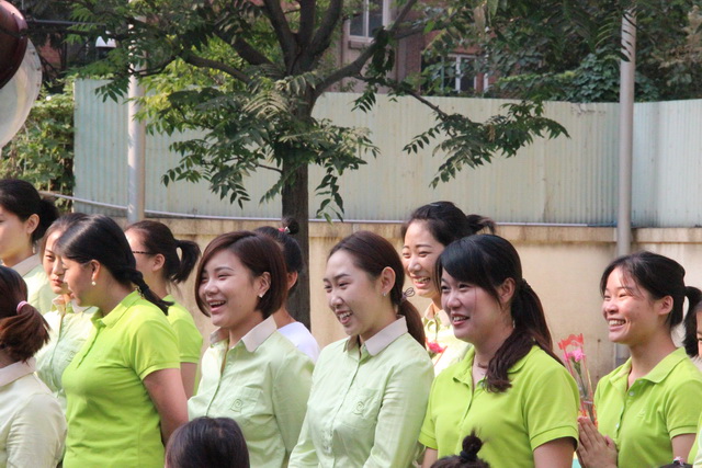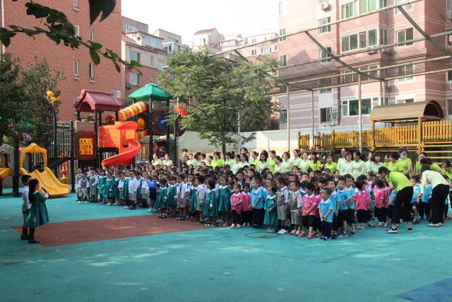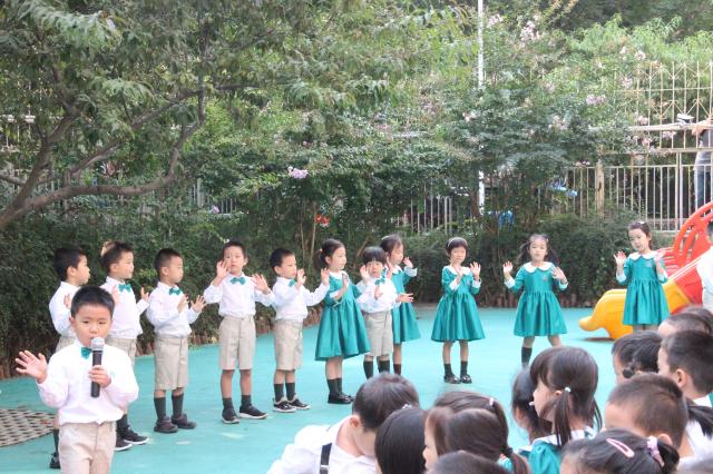 清晨望京分园全园师生齐聚操场,等待着每周一如期而至的升旗仪式。庄严的升旗仪式结束后,孩子们用歌声为全体教师带来了节日的惊喜