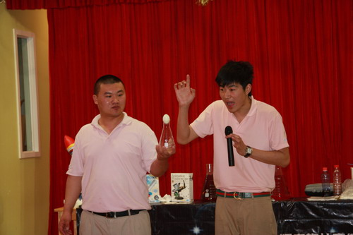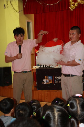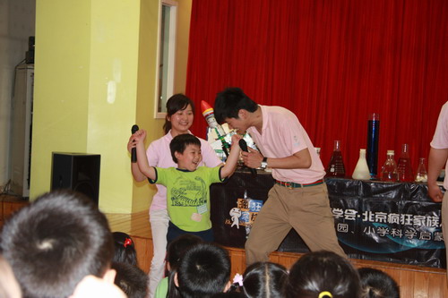 在疯狂科学表演中,“疯狂家族”的大哥哥们奉上了大气压强、二氧化碳等精彩纷呈、令人目不暇接的科学实验表演,孩子们也用高涨的热情积极回应着大哥哥们。整个表演在孩子们的热烈欢呼与掌声中展开,孩子们在惊喜、快乐的同时开拓了眼界,增长了科学知识,更感受到了科学的魅力!
