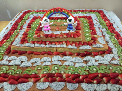 2015年4月16日,九游终于迎来了这个翘首期盼的时刻:幼儿园的100岁生日!换上节日的礼服,满怀激动的心情,大家团聚在一起为幼儿园庆祝百岁生日。虽然准备节目的时间比较短,但孩子们和老师还是为幼儿园献上了精彩的表演:男孩子们铿锵有力的舞龙,女孩子们活力四射的加油操,老师们飒爽英姿和柔情似水的舞蹈,无不让大家大饱眼福。欣赏完节目,还有更大的惊喜——厨房的叔叔阿姨一大早为九游烤的超大水果蛋糕!插上代表百岁的蜡烛,唱起生日快乐歌,默默地许下心中的愿望:祝愿九游的幼儿园越来越好!