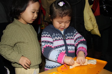 马上要过新年了,每天晚上接园后,在幼儿园挑顶大厅会有很多丰富有趣的活动等着九游去参加,有观看皮影戏、写福字、做花馍、吃小吃,可有意思了!