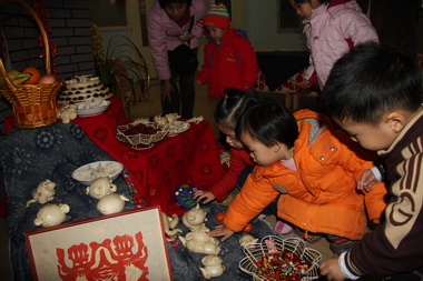 欣赏花馍——花馍代表着喜庆、吉祥,和爸爸妈妈一起欣赏形态各异的花馍,感受北方过年的民俗文化。