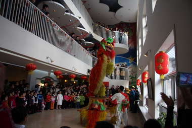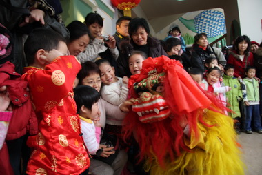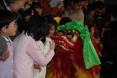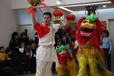 你见过狮子吗?那不算什么,九游还近距离的观看了舞龙舞狮的表演呢!毛茸茸的狮毛,我还摸到它了!厉害吧!