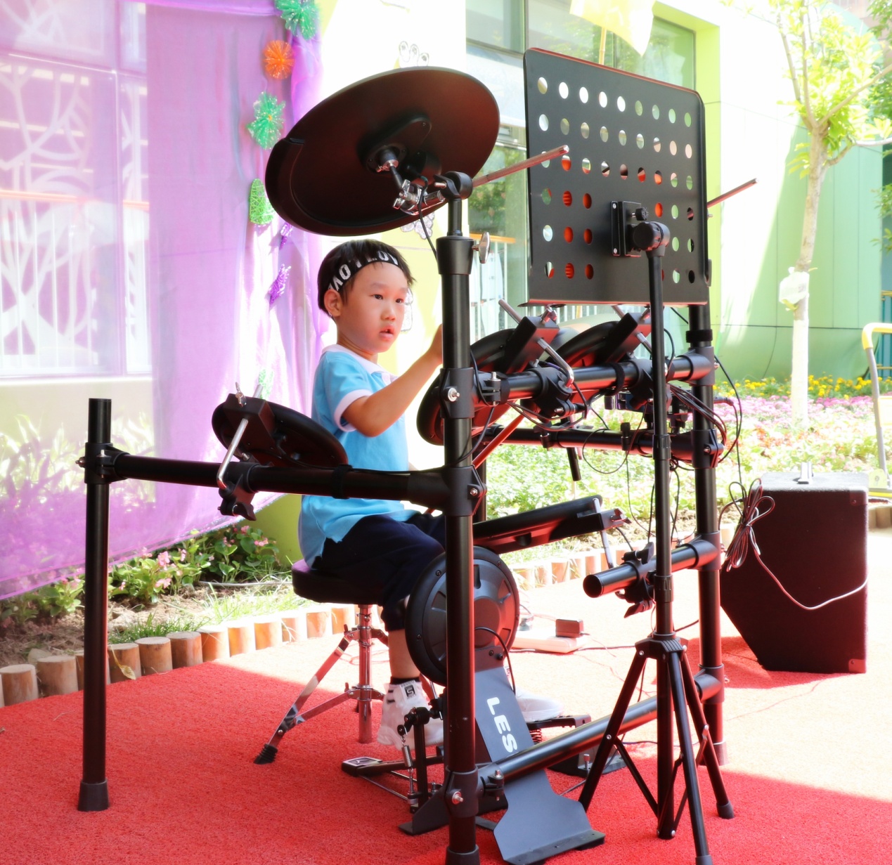 小朋友以歌唱形式庆祝自己的节日,每个班都根据幼儿年龄特点和兴趣准备了三首儿歌,歌曲内容多样化,包括经典童谣、英文歌、亲子互动歌曲和传统红歌。听孩子们大方自信的演绎,嘹亮的歌声要从画面里传出来了。