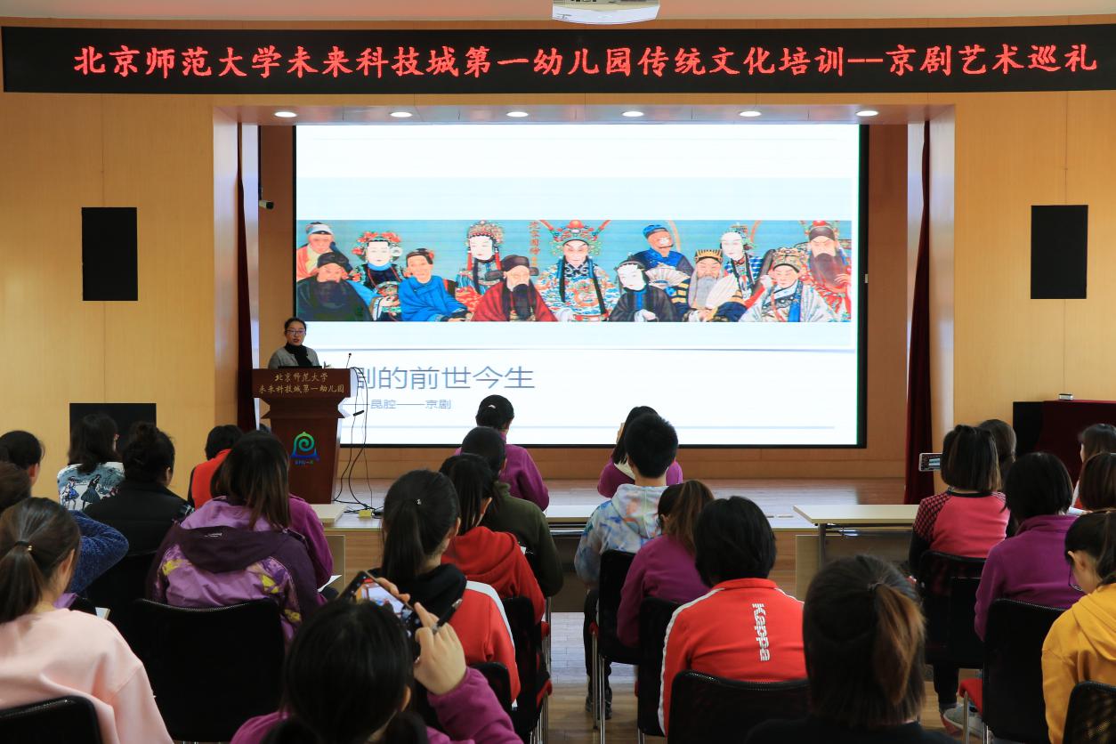 2018年12月12日,我园小一班丁冕妈妈吴侠为教师带来题为《京剧艺术巡礼》的讲座。吴老师是中央戏剧学院的教师,本次讲座主要从京剧的五个方面进行了完整的讲述:京剧的前世今生;京剧的角色——生旦净末丑;京剧的服装样式与审美准则;京剧表演艺术中的“唱念做打”和“戏剧五法”;京剧的表演内容家国故事。