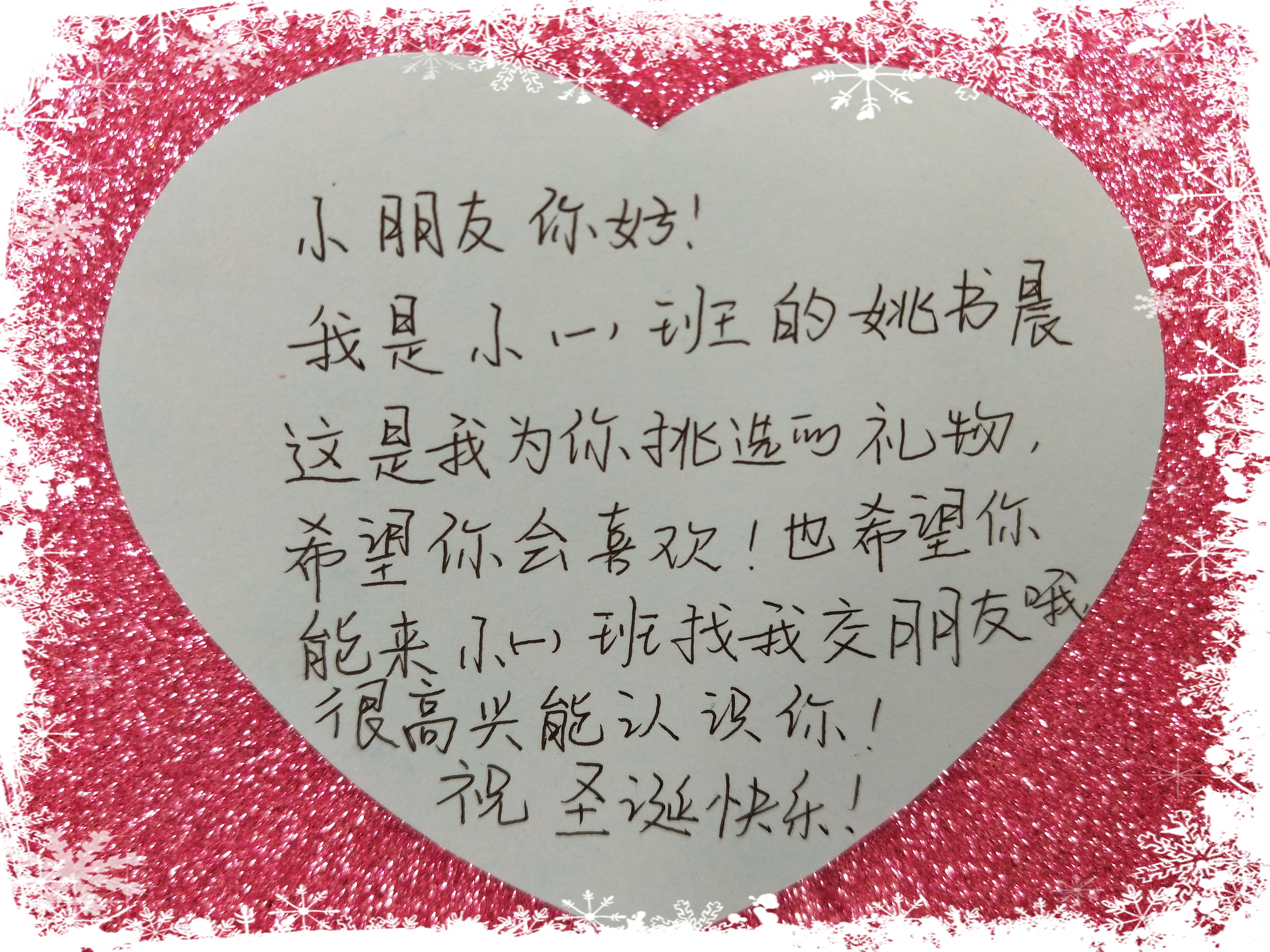 圣诞礼物漂流的活动结束了,小朋友不仅收获了一份心仪的礼物,也从最简单的拥抱、问好、自我介绍开始学会了结交新朋友的方法。在这个活动中,小朋友的语言表达能力提高了,跟新朋友的交流也变得更加积极主动,由一对好朋友的认识升级到班级之间的互相认识,小朋友交友的范围大大扩展,交往的能力的得到提升。这次的活动成为小朋友在这个冬天温暖的体验,情牵你我,爱传大家,美丽的友谊之花尽情绽放!