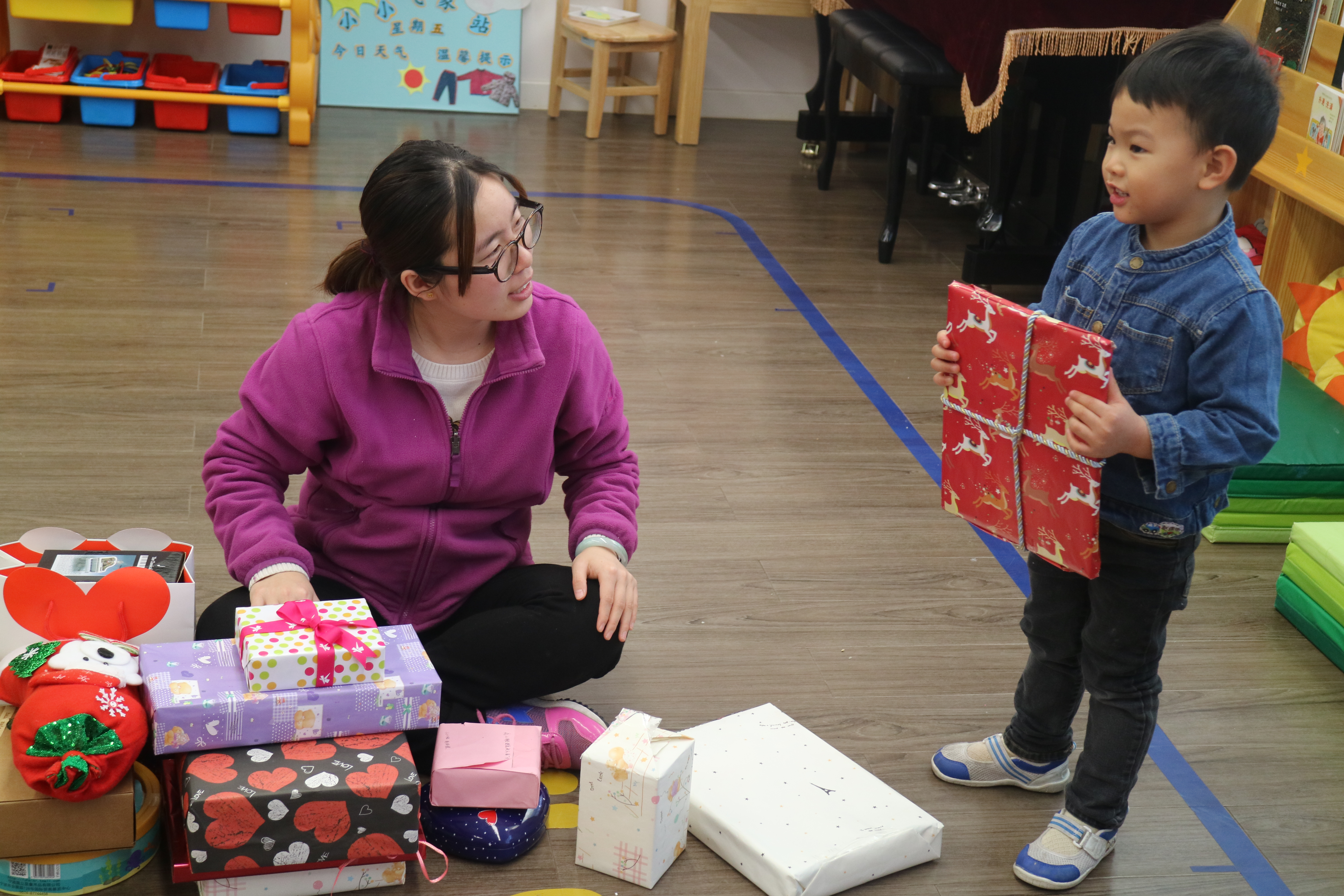 小朋友自己拿着“圣诞礼物漂流卡”,在全园小朋友的礼物里面自主选择心仪的礼物,快乐的行动马上开始!