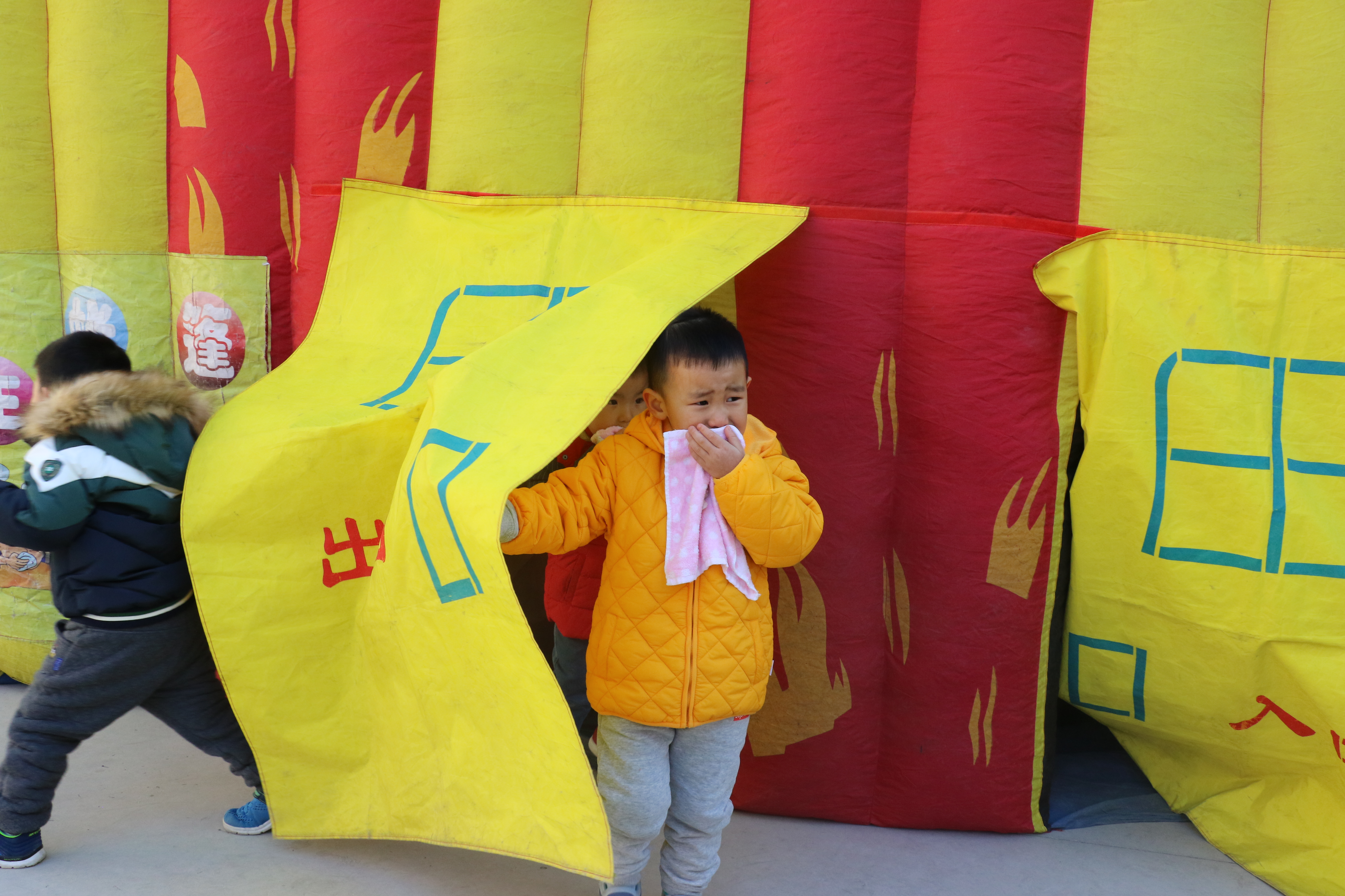 九游拿着湿毛巾、捂住口鼻,弯腰小步在黑黑的烟雾帐篷里模拟"逃生"演习。