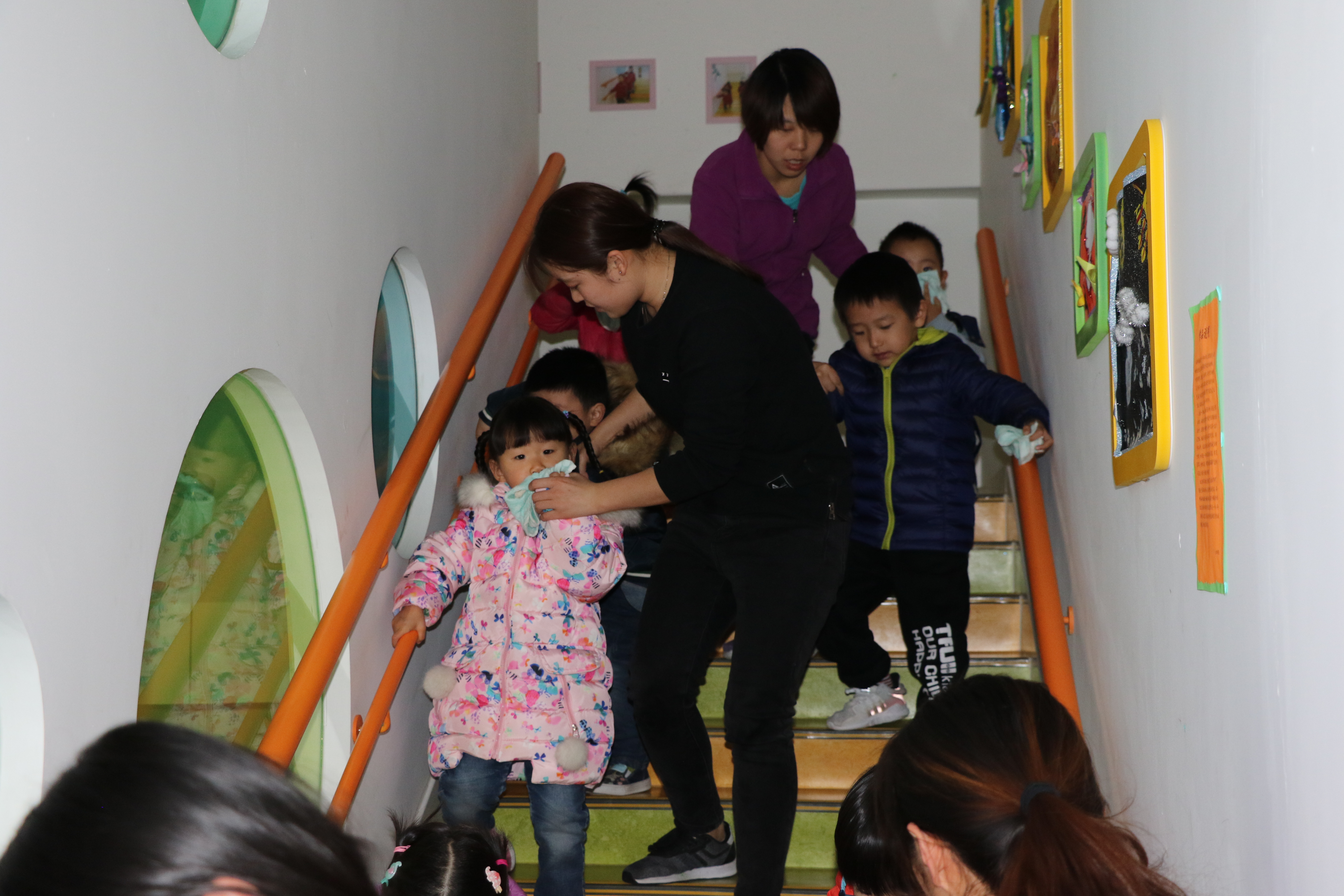 看,九游真实的演练开始啦!11月29日下午三点,消防警报响起,小朋友们用湿毛巾捂住口鼻,弯腰俯身,在老师们的组织下,快速有序的安全撤离。