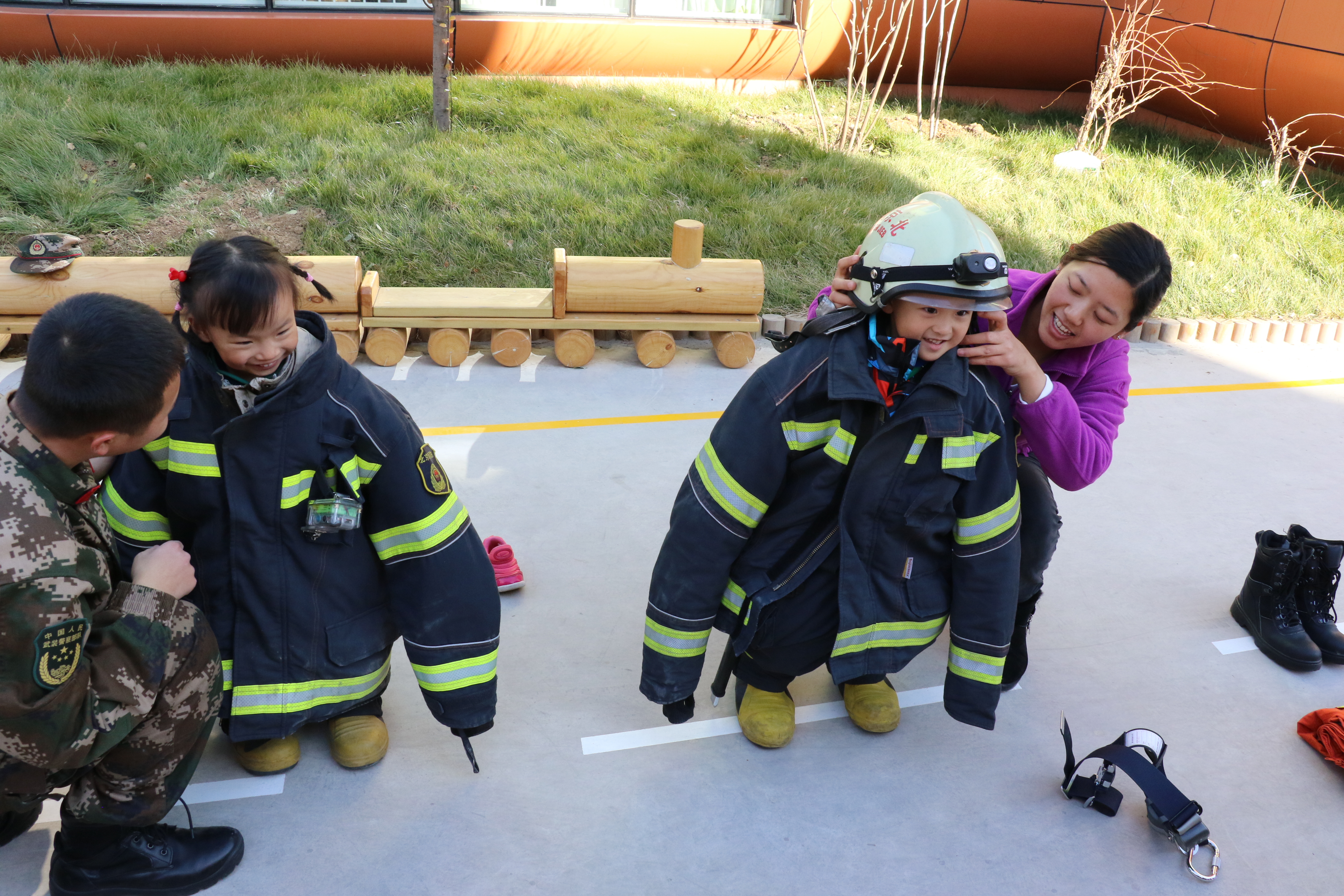 穿上消防员叔叔的"战斗服",瞧我多神气!