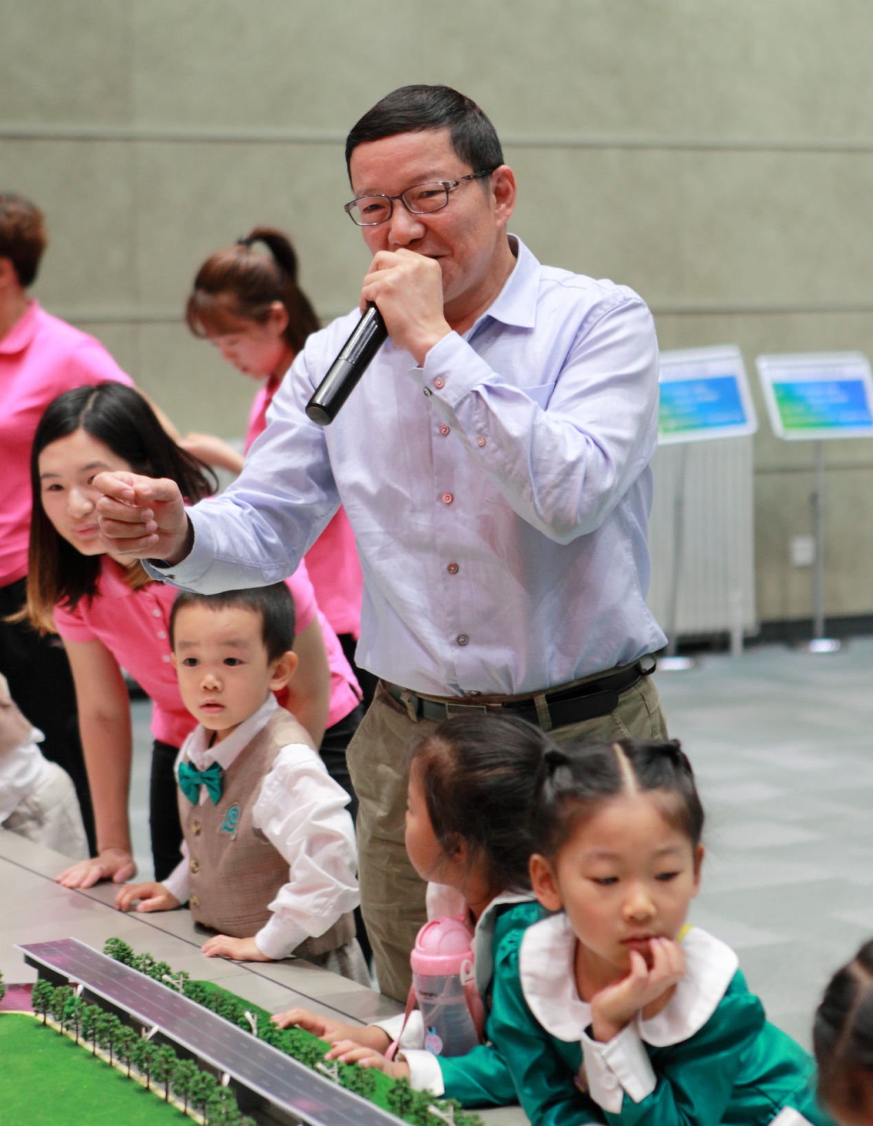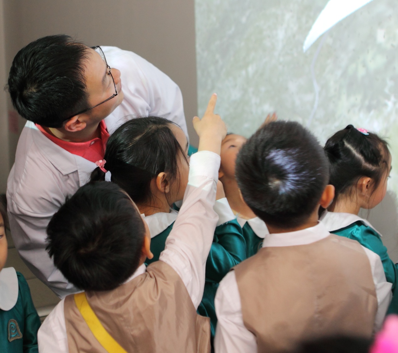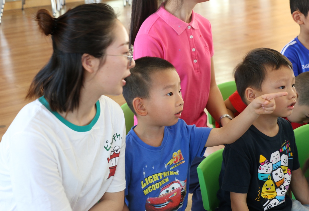 讲解太有趣了,小朋友们问题真多,站起来和叔叔互动。