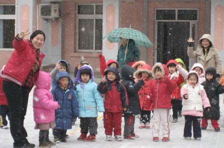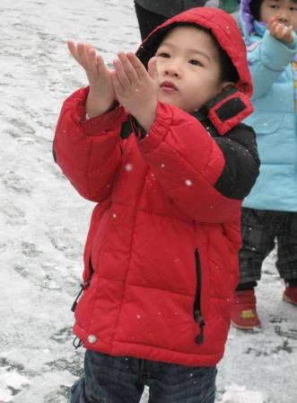 孩子们终于等到了雪天,这场2009年的第一场雪虽然不大,但也足以让孩子欣喜万分。