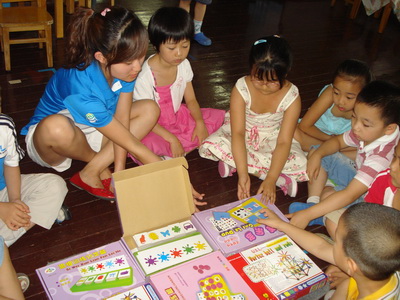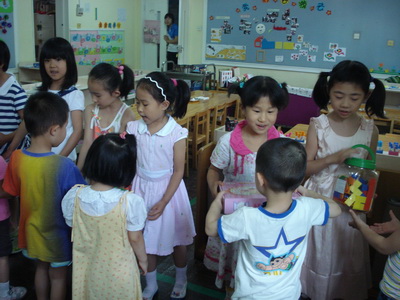 2. 老师跟孩子们一起商讨赠送玩具的安排